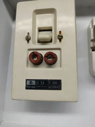 Interruptor ticino trifásico 26 A/369 V,la carcasa rota en la parte inferior ver fotos,Recuperado Restaurado y Probado con Tester,los tres fusibles están bien. Dispositivo pensado para coleccionistas o alguna persona que tenga este aparato estropeado y tenga la carcasa ,descatalogado.