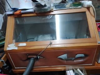 Maquina pulidora joyería+ mueble madera con tapa y cristal ( para proteger y que no salga el polvillo) con luz, en perfecto estado, salvo que el interruptor del motor está partido ( aunque funciona perfectamente), y habría que poner uno nuevo, para más comodidad. Alto: 40 cm. Largo: 64 cm. Fondo: 40 cm SOLAMENTE TRABAJO CON CORREOS.