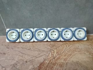 Vendo varios mecanismos eléctricos en buen estado. - 11 enchufes de pared de tres clavijas. - 12 interruptores conmutadores de pared. - Todos son de color blanco y parecen estar impecables. La unidad de un solo mecanismo se vende 2€. La unidad de 2 mecanismos se vende 3,5€. Se hace precio por la compra por lote.