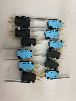 Lote de 12 interruptores finales de carrera conmutados de alta calidad. Son ideales para diversas aplicaciones. Si necesitas mas, preguntame - Color: Negro y azul. - Material: Plástico y metal.