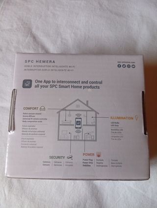 Vendo interruptor inteligente wifi SPC Hemera, doble pulsador. Está sin abrir la caja. Dispongo de diez unidades - Control remoto mediante app. - Programación horaria. - Panel táctil. - Compatible con otros dispositivos SPC Smart Home.