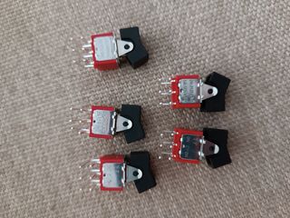 Se venden 5 interruptores basculantes. Son rojos y negros, y parecen estar en buen estado. - 5 unidades en total. - 2A 250VAC 5A 125VAC