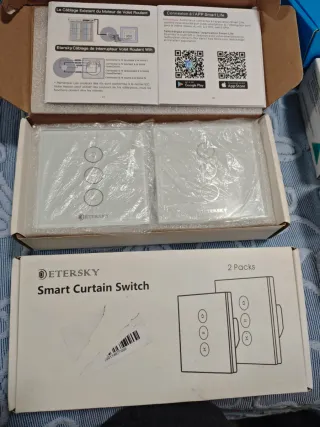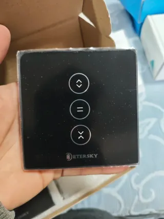 Interruptor inteligente para persianas de la marca ETERSKY. Permite controlar la apertura y cierre de tus cortinas de forma remota. - Diseño moderno y minimalista. - Pantalla con indicador de porcentaje de apertura.