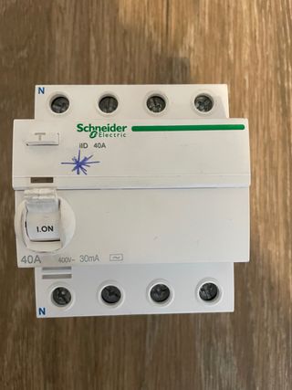 Se vende interruptor diferencial Schneider Electric iID. Está en buen estado. - Marca: Schneider Electric - Modelo: iID 40A - Intensidad: 40A - Sensibilidad: 30mA -3p + N -Poco uso, funciona perfectamente