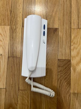 Teléfono portero automático en excelentes condiciones. Es de color blanco y tiene un diseño elegante. - Incluye cable espiral. - Botones de control. - Interruptor de encendido/apagado.