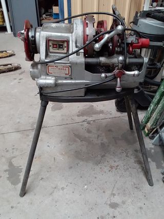 Máquina roscadora eléctrica REX N80A en buen estado. - Capacidad hasta 3 pulgadas. - Ideal para trabajos de fontanería y mantenimiento. - Incluye soporte. - Interruptor ON/OFF visible.