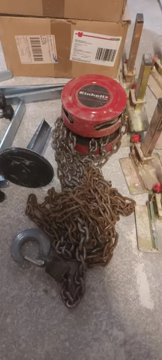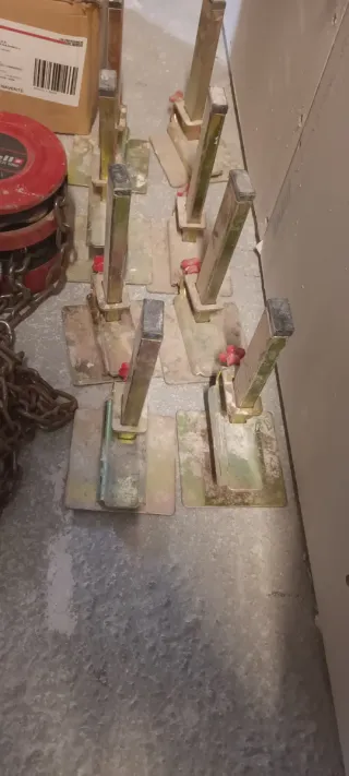 Set de fijadores para la colocación de peldaños. Y un polipastro manual pequeño - Material metálico resistente. - Diseño para asegurar la estabilidad.