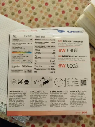 Downlight LED empotrable de la marca GSC, modelo BELUR. Ideal para iluminación interior. - Potencia: 6W - Temperatura de color: 4000K (Luz día / Nature light) - Flujo luminoso: 600 Lm - Apertura: 120° - Diámetro: Ø120mm - Voltaje: 220-240V - Frecuencia: 50/60Hz - Protección: IP40 IK02