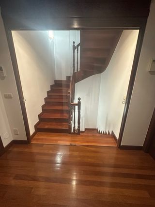 Puerta interior de madera maciza con 6 cristales translúcidos que dejan pasar la luz manteniendo la privacidad. Acabado en tono madera natural, estilo clásico y elegante, ideal para salón, cocina o despacho. Incluye manilla y herrajes (los que se ven en la foto). En buen estado general, importantes; solo marcas normales de uso. Uno de los cristales ( superior izquierdo esta roto) Los demás están en perfecto estado. Se vende por reforma de vivienda. Medidas: 82,5 x 203 cm Recogida en mano (no se envía por tamaño). Cualquier duda, pregunta sin compromiso
