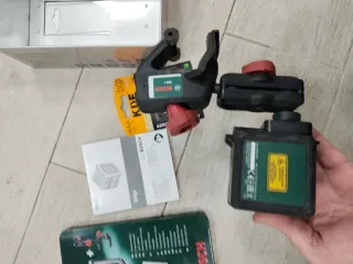 Nivel láser de líneas cruzadas Bosch Quigo. - Incluye soporte. - Ideal para proyectos de bricolaje y construcción.