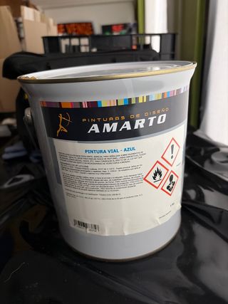 Pintura acrílica en base disolvente de la marca Amarto, color azul. - Especial para señalizar pavimentos. - Uso en carreteras, zonas deportivas y viales. - Contiene microesferas de vidrio esferovídeo.