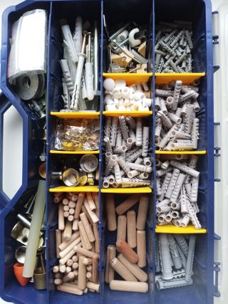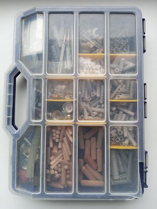 Se vende caja herramientas, incluyendo el contenido completo. NO REGATEOS NI MAREANTES - Compartimentos de plástico resistente. - Incluye una variedad de fijaciones y accesorios.
