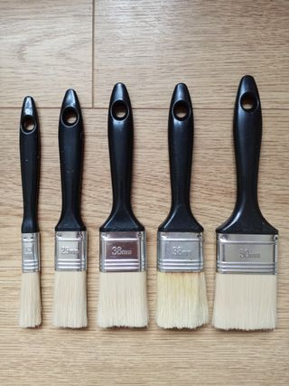 Conjunto de cinco brochas de diferentes tamaños para pintura. - Brocha de 13mm - Brocha de 25mm - Brocha de 38mm - Brocha de 38mm - Brocha de 50mm