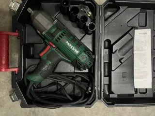 Pistola de impacto eléctrica Parkside con maletín y accesorios. - Modelo: POSSE 550 A1 - Incluye vasos de impacto. - Maletín de transporte.