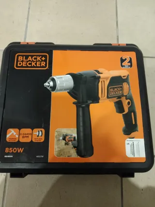 Taladro percutor Black+Decker de 850W, ideal para trabajos en el hogar. Incluye su maletín original para un fácil transporte y almacenamiento. - Potencia: 850W - Acción percutora - Portabrocas sin llave - Velocidad variable (0-54400 BPM) - Regalo variedad de brocas.