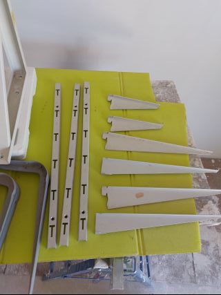 Coleccion de escuadras de pared NUEVAS, de todos los tamañas y formas, para amantes de la reformas de interiores del hogar. Decoración, DIseño de interiores, baldas, repisas, librería. estantes de biblioteca, tiedas..etc. Se venden por motivos de no realizar mi proyeto de estanterías.