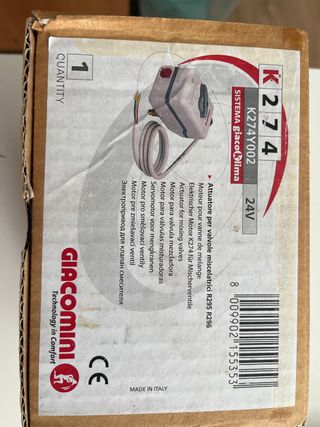 Actuador para válvulas mezcladoras Giacomini. - Modelo: K274Y002 - Sistema: Giacoclima - Voltaje: 24V - Para válvulas R295 R296 - Fabricado en Italia