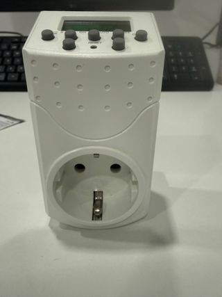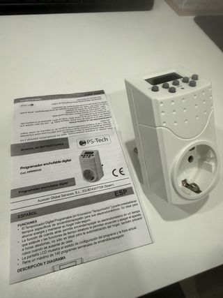 Programador enchufable digital PS-Tech. Permite controlar el encendido y apagado de aparatos eléctricos. - Pantalla LCD. - Botones de control. - Función de reinicio.