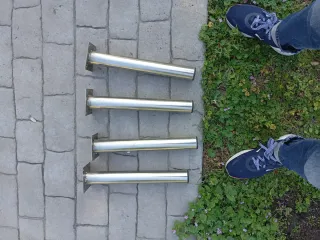 Set de cuatro patas de acero inoxidable con base cuadrada. - Material: Acero inoxidable. - Diseño: Tubo cilíndrico con base plana. - Cantidad: 4 unidades. Medidas 40 cm de alto