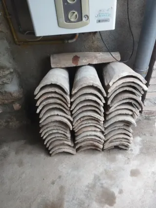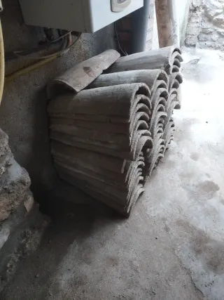 Conjunto de tejas curvas de barro, ideales para tejados o proyectos de construcción. - Material: Barro - Forma: Curva - Color: Terracota