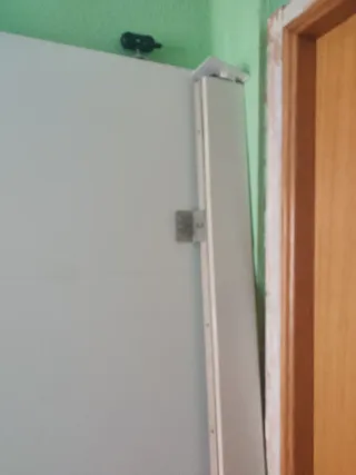 Puerta corredera de color blanco, con un diseño moderno y minimalista panel horizontal - Guía superior e inferior. - Medidas puerta - ancho 72.5 - alto 2 metros - de grosor 4 cm