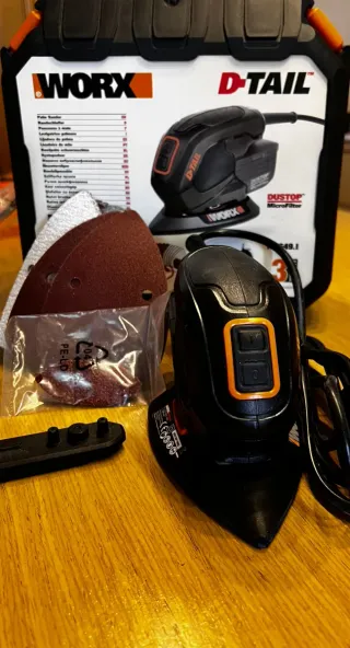 Lijadora orbital de detalle Worx D-TAIL. - Incluye lijadora. - Incluye accesorio de detalle. - Incluye varias lijas de repuesto.
