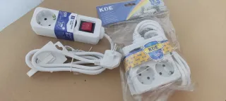 2 Regletas alargador de la marca KDE con cable de 1.5 metros. - Color blanco. - Un enchufe con interruptor. - Dos enchufes sin interruptor.