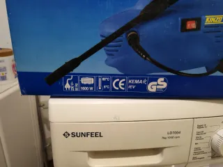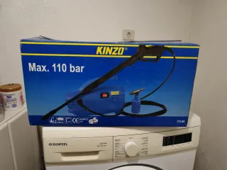Hidrolimpiadora de la marca KINZO con una presión máxima de 110 bar. - Potencia de 1600 W. - Incluye lanza y botella para detergente. - Certificaciones CE y GS.