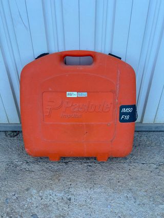 Clavadora Paslode a batería y gas, modelo IM50 F18. Ideal para trabajos de fijación. - Color naranja. - Incluye maletín de transporte.