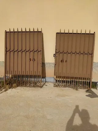 Se venden dos hojas de puerta de parcela, cada una con su propio motor. Puerta y motores 400, puerta sóla 400, motores 400 - Diseño de reja. - Color marrón.