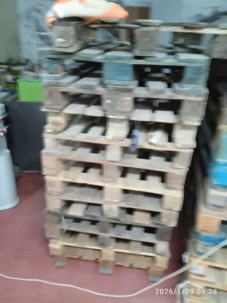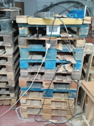 Lote de palets europeos disponibles en blanco y en color. Ideales para logística y almacenamiento. - Palets de madera. - Formato europeo estándar.