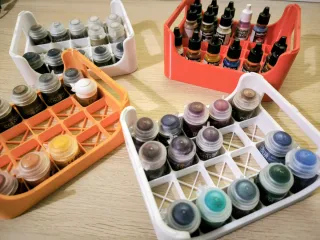 Práctico organizador para botes de pintura, de army painter, Vallejo o citadel. También hay opción de cubeta vacía Vallejo/army painter y citadel 4€ Army painter Alto 5€ Descuento por cantidades Diferentes colores a elegir, se ofrece el servicio de impresión, si es necesario también se puede diseñar a medida