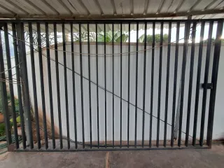 Puerta de garaje metálica de barras verticales. Medidas 3,50 m ancho y 2,20 m de alto Ideal para entradas de vehículos o como cerramiento. - Material: Metal. - Color: Negro. - Diseño: Barras verticales. Motor para puerta corredera Faac 740/741. - Incluye motor - Manual de instrucciones. A veces corre la puerta despacio. Falta cremallera y mandos