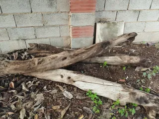 Se venden 3 troncos de madera natural, ideales para decoración o proyectos de bricolaje. - tamaño: 2 m. de largo y 20 cm. de grosor - Madera de aspecto rústico. - Variedad de formas y tamaños. Se venden las tres juntas.