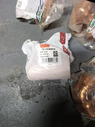Lote de tes de cobre para fontanería. Incluye tes de reducción y codos. - Material: Cobre. - Tipo: Tes de reducción y codos.