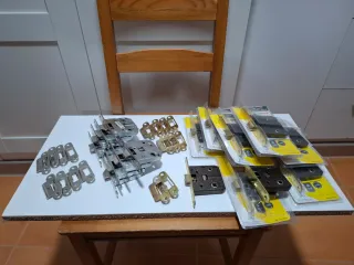 -Los picaportes plateados apenas se han usado unos meses, marca YALE, 8 unidades. -Los picaportes dorados se han usado durante 7 años, marca BYP, 10 unidades. Falta una chapa para el resbalón dorada. -Todos funcionan perfectamente.