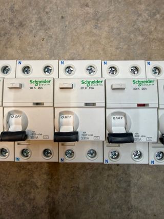 Se venden varios interruptores diferenciales Schneider de 25A. Precio por unidad - Marca: Schneider Electric - Intensidad: 25A - Tipo: Interruptor diferencial