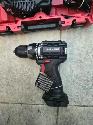 Taladro atornillador percutor Parkside Performance de 20V. Preguntar por disponibilidad de baterías y cargador 115€ con batería smart 4Ah y cargador - Motor Brushless. - Incluye maletín.