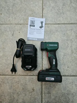 Se vende taladro atornillador Parkside de 20V, con su cargador y batería. Sin estrenar. Preguntar por disponibilidad de baterias - Incluye taladro atornillador. - Incluye cargador. - Incluye batería. - Manual de instrucciones.