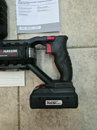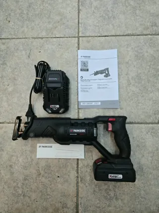 Sierra de sable Parkside con batería y cargador incluidos. Sin estrenar. Preguntar por disponibilidad de baterias - Incluye sierra de sable. - Batería Parkside smart X20V TEAM. - Cargador. - Manual de instrucciones.