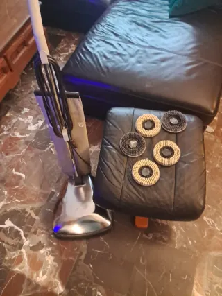 Enceradora para suelos de mármol, piedra y otros materiales. Ideal para mantener tus superficies brillantes. - Incluye varios cepillos para diferentes acabados.