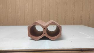 Ladrillos de terracota con forma hexagonal, ideales para almacenar botellas. - Material: Terracota. - Diseño: Forma hexagonal con huecos. - Color: Terracota.