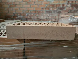 Ladrillos de caravista con acabado rústico. - Material cerámico. - Diseño perforado en la cara superior.
