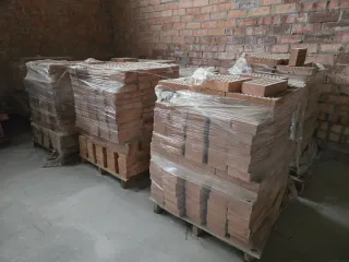 Ladrillos diseñados para acumular calor. - Material de construcción. - Color marrón rojizo. - Medidas: 23x19x5 cm - 16 unidades Para recoger en Santiago en un tercer piso sin ascensor
