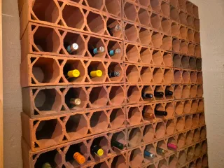Se venden 4 ladrillos botelleros de terracota.1€ los 4 Minimo 10 unidades - Material: Terracota. - Diseño hexagonal con huecos circulares para botellas.