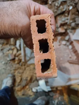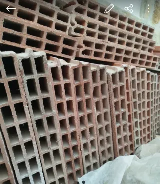 Se ofrecen restos de obra de ladrillos, ideales para proyectos pequeños o reparaciones. - Ladrillos huecos de cerámica. - Color terracota.