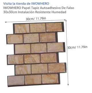 Plancha de papel tapiz autoadhesivo con diseño de ladrillo. Ideal para decorar paredes. - Tamaño: 30x30cm. - Resistente a la humedad.