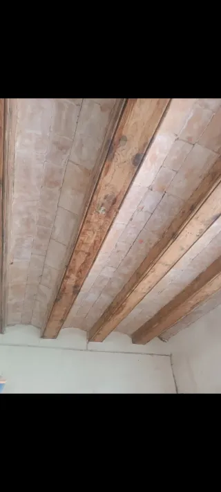Bóveda catalana con vigas de madera, lista para ser restaurada o integrada en un proyecto. - Estructura de ladrillo y madera. - Diseño tradicional.