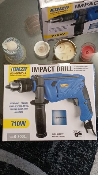Un taladro percutores Kinzo de 710W, nuevosñ a estrenar. Ideal para taladrar agujeros en madera, metal, plástico, ladrillo y mampostería. - 710W de potencia. - Velocidad variable de 0-3000 rpm. - En perfecto estado.