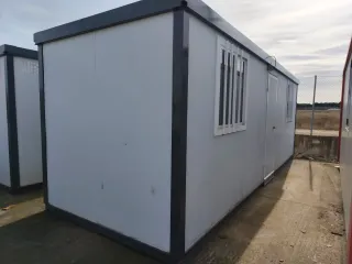 Caseta de chapa de 8 metros de largo. Ideal para almacenamiento o como espacio de trabajo. Doble puerta Ideal para almacén o caseta de campo